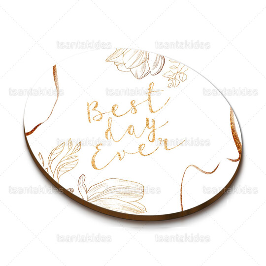 Ξύλινο σουβέρ γάμου εκτυπωμένο με θέμα Floral Golden Rings