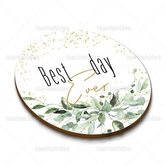 Ξύλινο σουβέρ γάμου εκτυπωμένο με θέμα Greenery