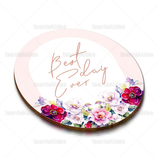 Ξύλινο σουβέρ γάμου εκτυπωμένο με floral διάκοσμο σε αψίδα
