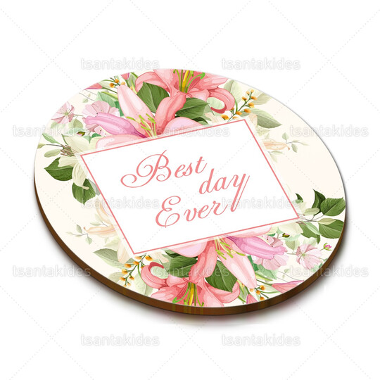 Ξύλινο σουβέρ γάμου εκτυπωμένο με floral σύνθεση από ροζ λίλιουμ