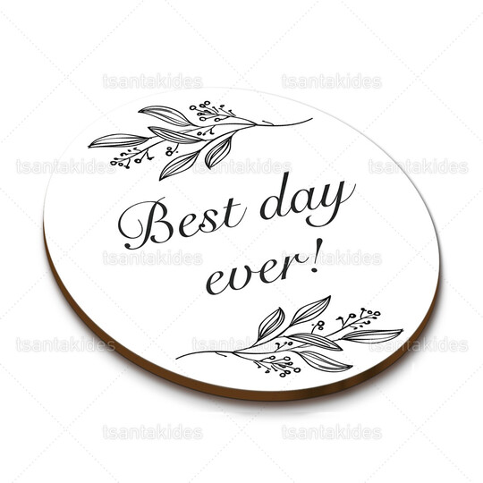 Ξύλινο σουβέρ γάμου εκτυπωμένο σε γκρι αποχρώσεις και λογότυπο τα μονογράμματα με κλαδί ελιάς