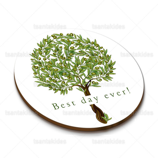 Ξύλινο σουβέρ γάμου εκτυπωμένο με θεμα την ελιά
