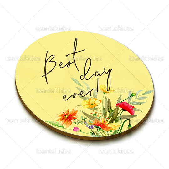 Ξύλινο σουβέρ γάμου εκτυπωμένο με σύνθεση wildflowers σε αψίδα