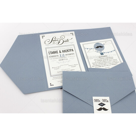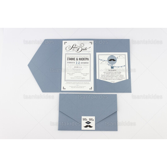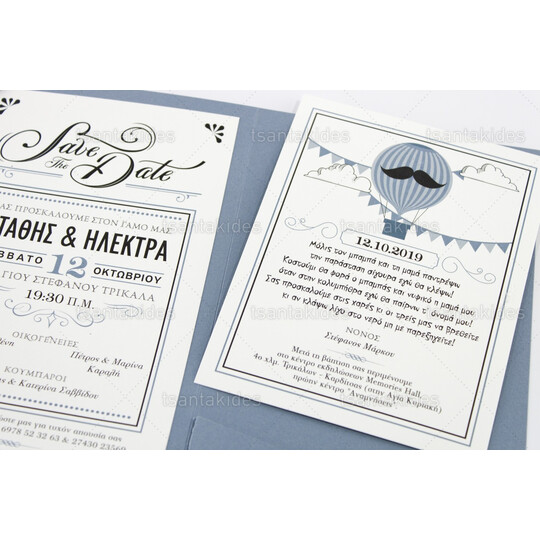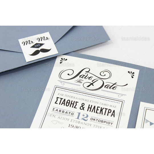 Προσκλητήριο γάμου εκτυπωμένο με θέμα Save the date