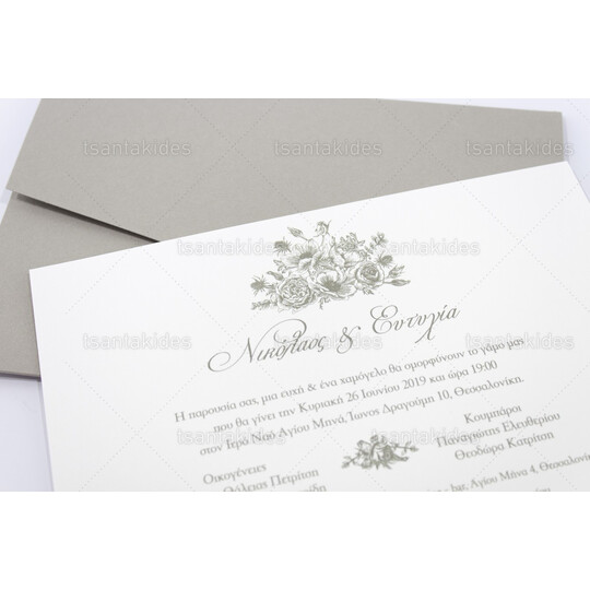 Προσκλητήριο γάμου εκτυπωμένο με θέμα Ανθοδέσμη