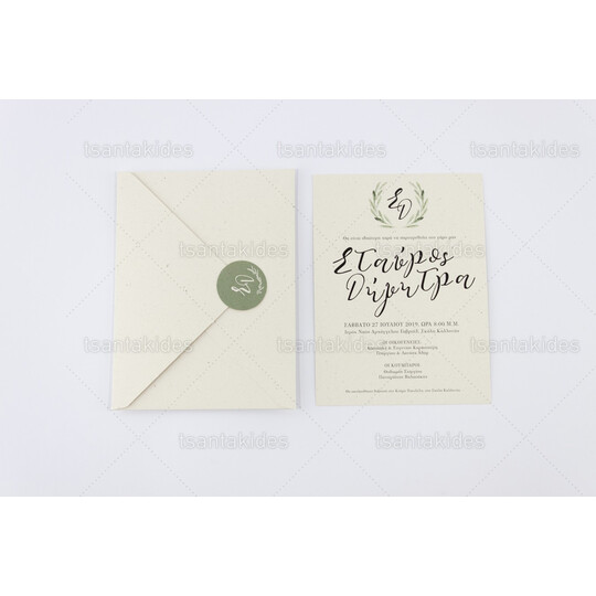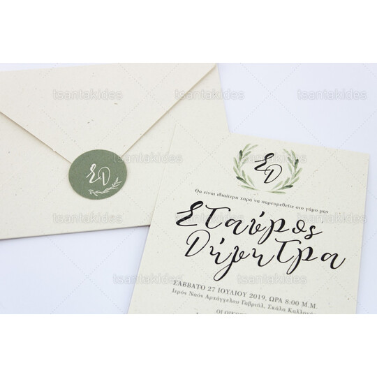 Προσκλητήριο γάμου εκτυπωμένο με θέμα Στεφάνι