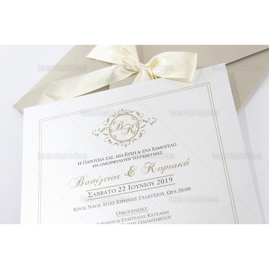 Προσκλητήριο γάμου εκτυπωμένο με θέμα Monograms