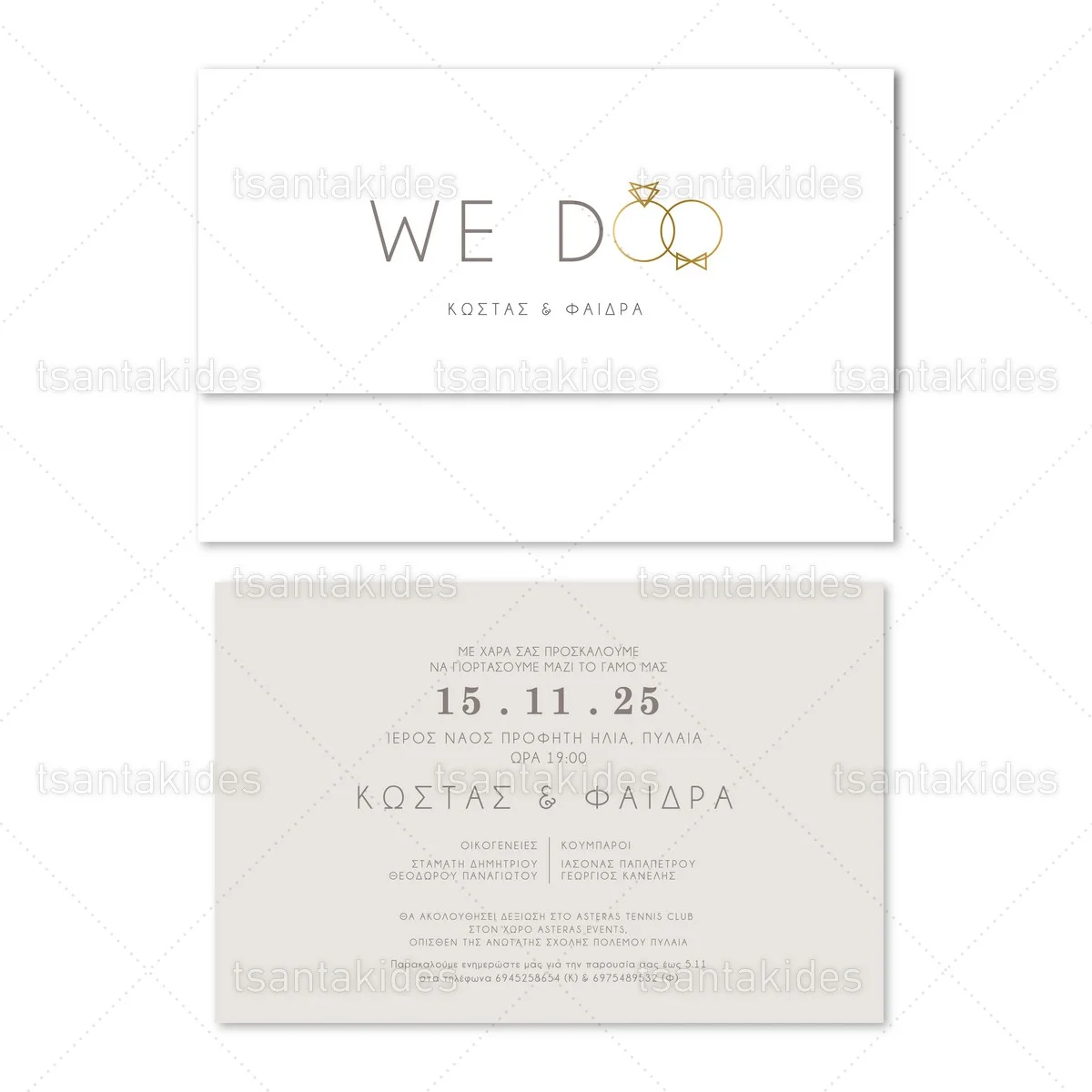 Προσκλητήριο γάμου εκτυπωμένο με θέμα We Do.
