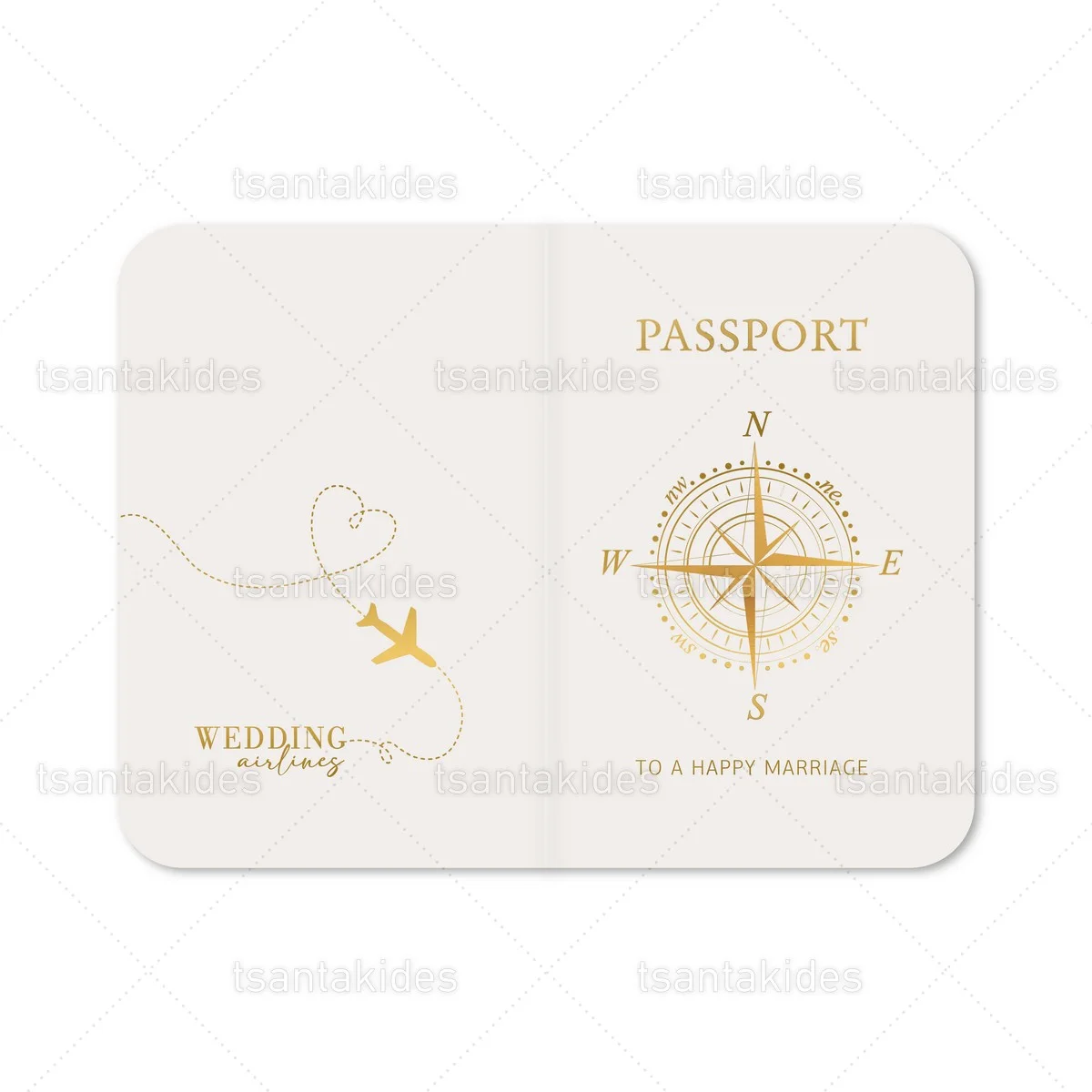 Προσκλητήριο γάμου εκτυπωμένο με θέμα Travel Gold Wedding.