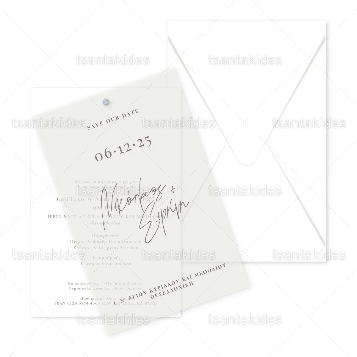 Προσκλητήριο γάμου εκτυπωμένο με θέμα Save Our Date.