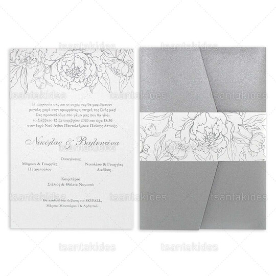 Προσκλητήριο γάμου εκτυπωμένο με θέμα  Silver Floral