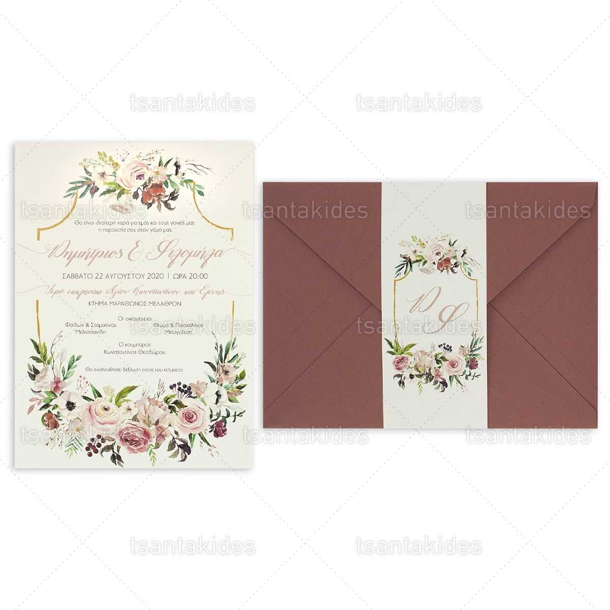 Προσκλητήριο γάμου εκτυπωμένο με θέμα Floral Crest