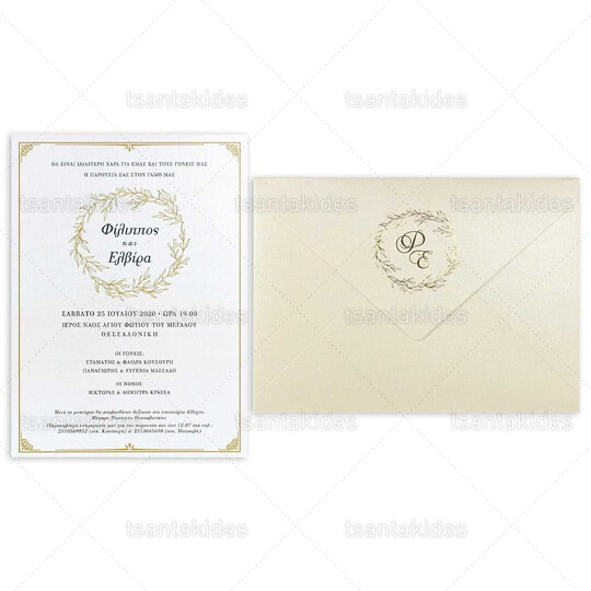Προσκλητήριο γάμου εκτυπωμένο με θέμα  Gold Foil Wreath