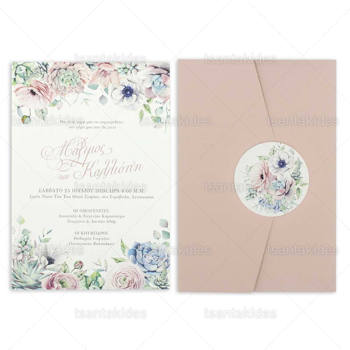 Προσκλητήριο γάμου εκτυπωμένο με θέμα Chic Blush Floral & Succulents