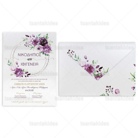 Προσκλητήριο γάμου εκτυπωμένο με θέμα  Elegant Roses