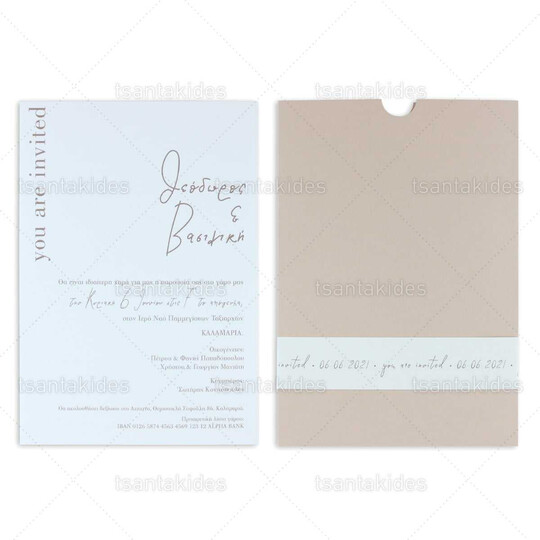 Προσκλητήριο γάμου εκτυπωμένο με θέμα Neutral Minimal Wedding