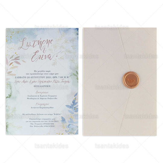 Προσκλητήριο γάμου εκτυπωμένο με θέμα Watercolor Foliage
