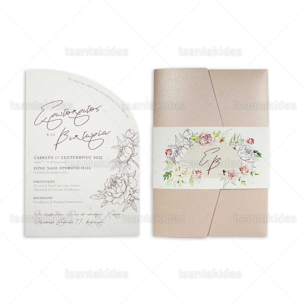 Προσκλητήριο γάμου εκτυπωμένο με θέμα Sunshine Peonies