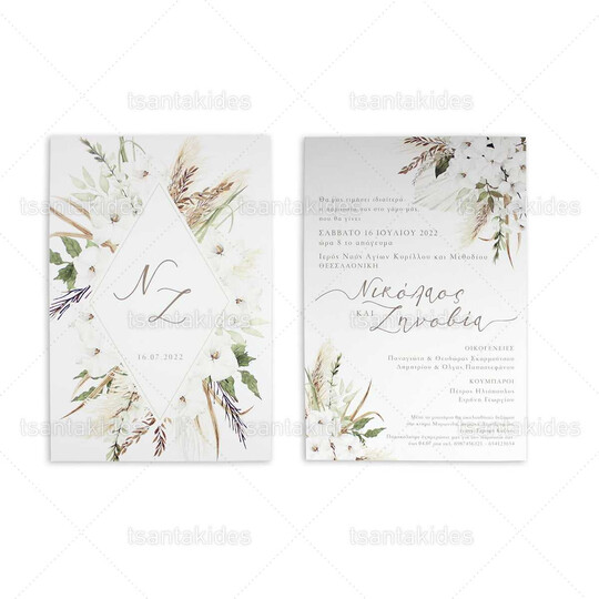 Προσκλητήριο γάμου εκτυπωμένο με θέμα Boho Flowers