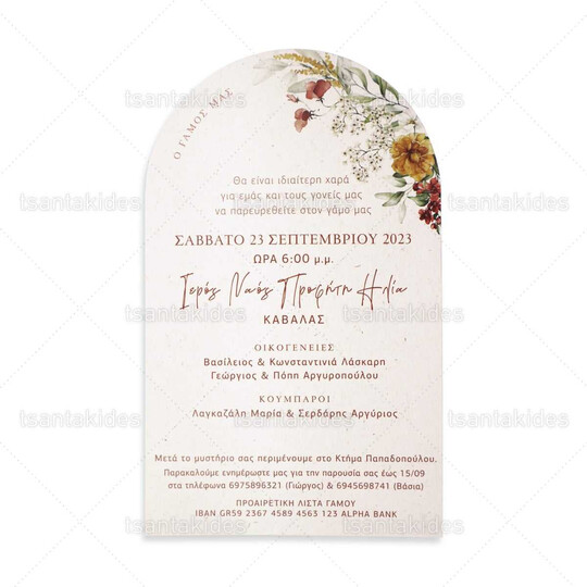 Προσκλητήριο γάμου εκτυπωμένο με θέμα Terracota Floral