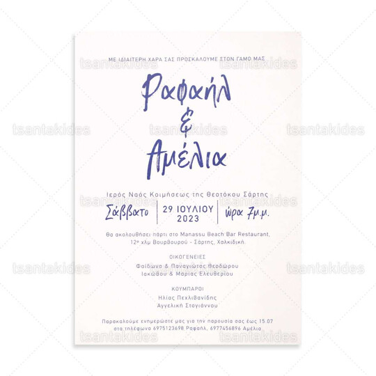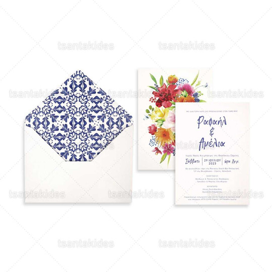 Προσκλητήριο γάμου εκτυπωμένο με θέμα Greek Summer Wedding