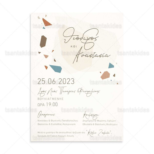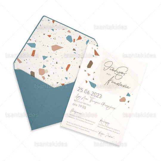 Προσκλητήριο γάμου εκτυπωμένο με θέμα Terrazzo Lovers