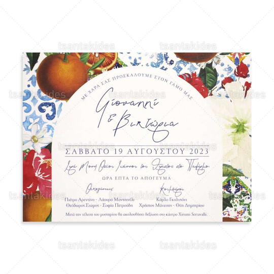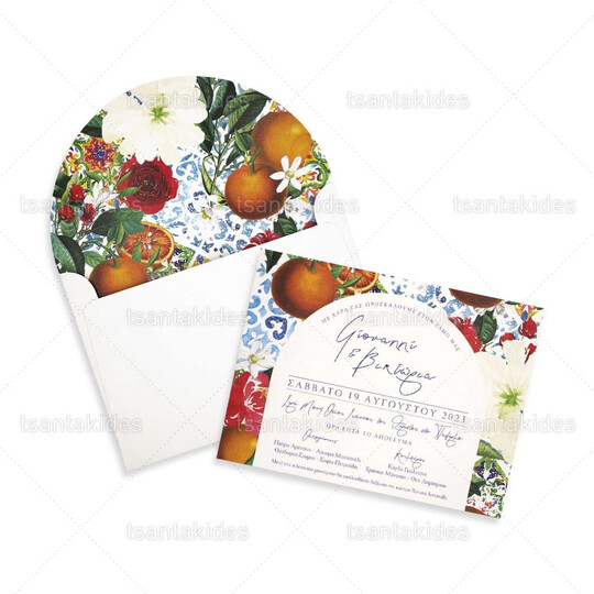 Προσκλητήριο γάμου εκτυπωμένο με θέμα Sicilian Wedding