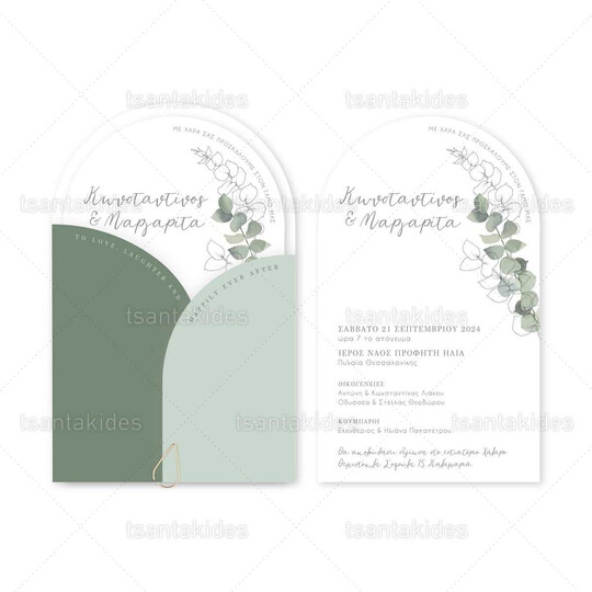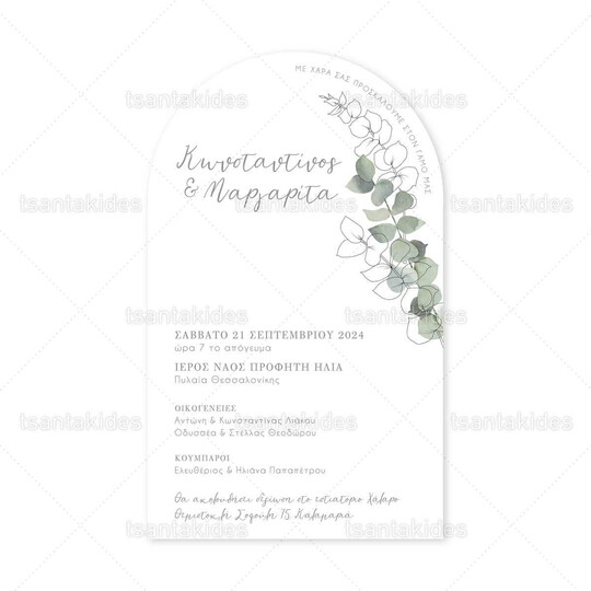 Προσκλητήριο Γάμου εκτυπωμένο με θέμα Eucalyptus