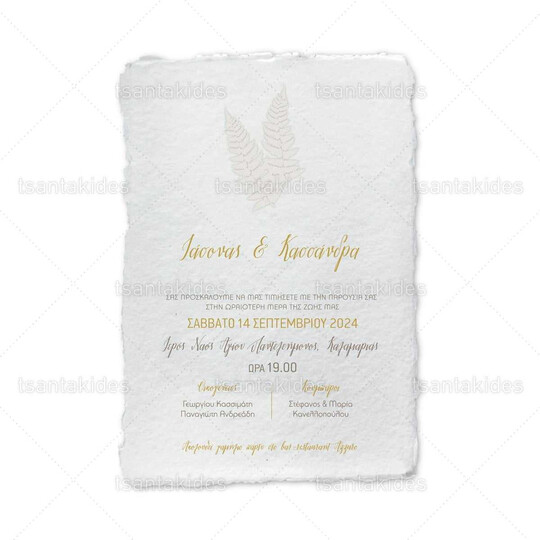Προσκλητήριο γάμου εκτυπωμένο με θέμα Fern