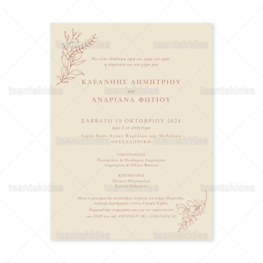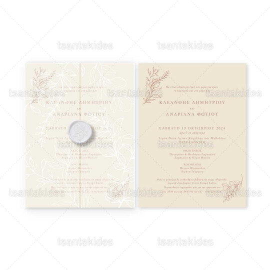 Προσκλητήριο γάμου εκτυπωμένο με θέμα Branches.