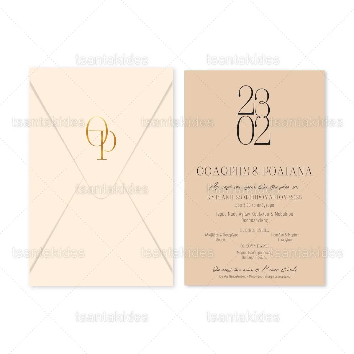 Προσκλητήριο γάμου εκτυπωμένο με θέμα Monograms.
