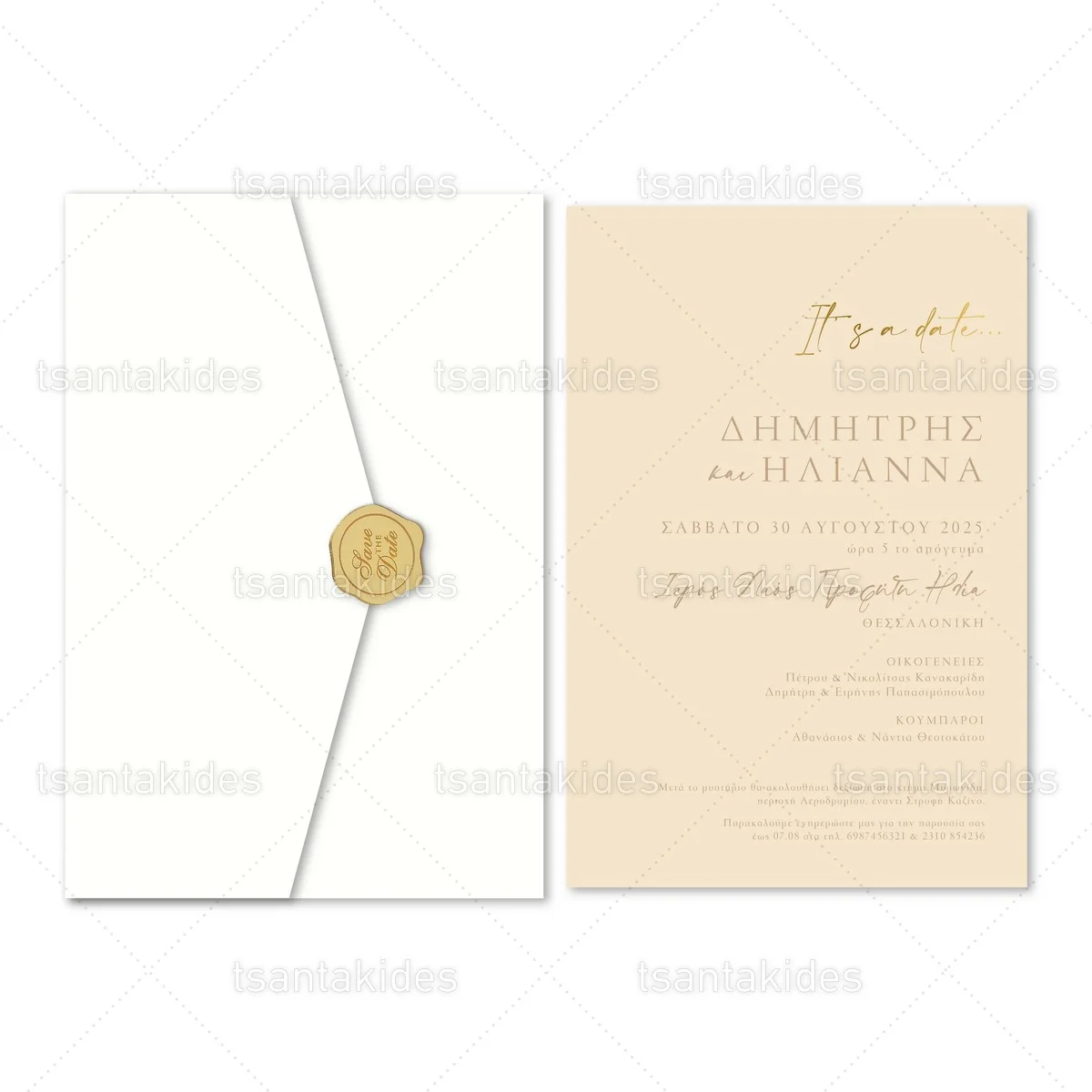 - Στην τιμή περιλαμβάνεται η χρυσοτυπία στην εσωτερική κάρτα και το διακοσμητικό plexiglass σε σχήμα βουλοκέρι WPG001 για το κλείσιμο του φακέλου με διάσταση 3,5 x 4 cm.