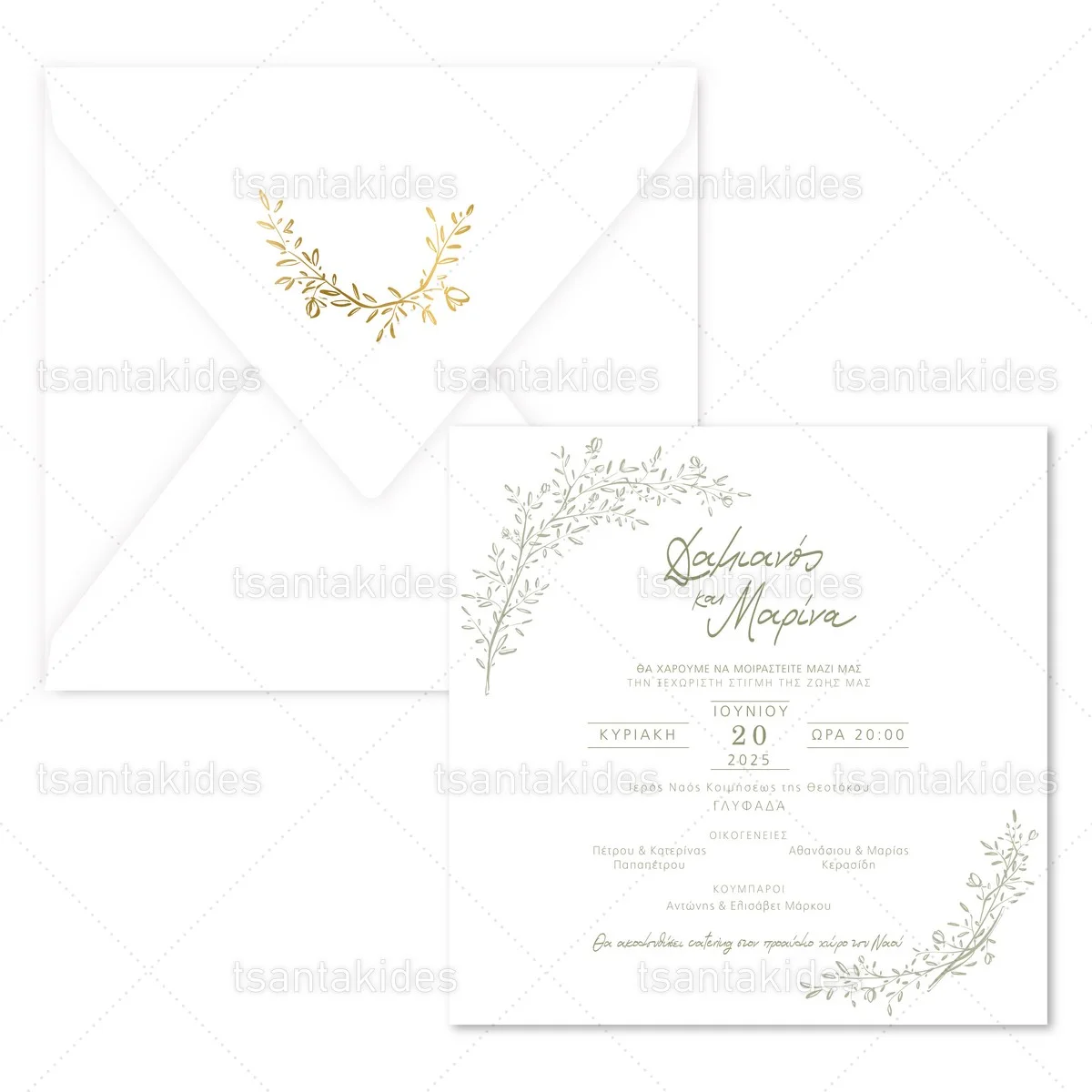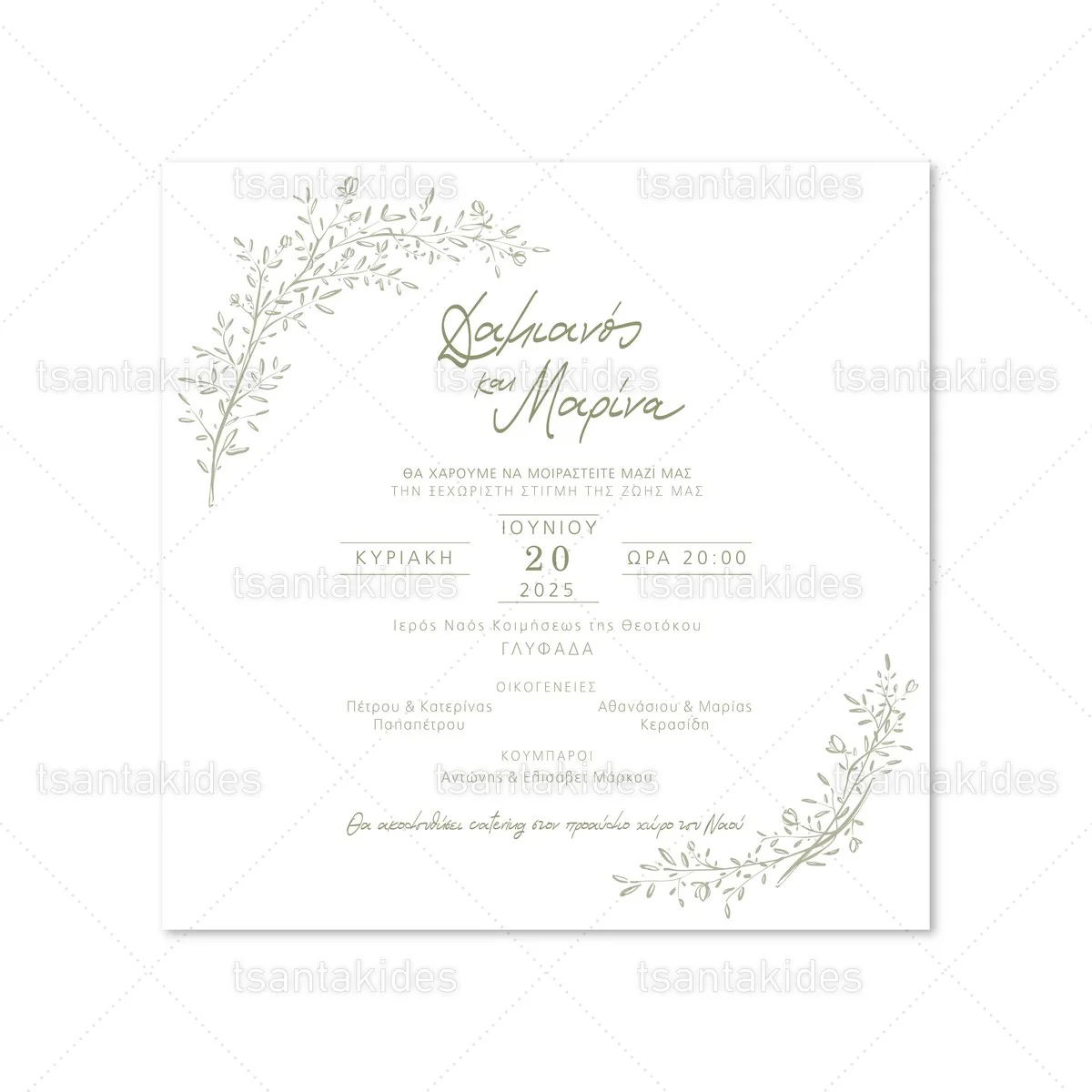 Προσκλητήριο γάμου εκτυπωμένο με θέμα Line Art Floral.