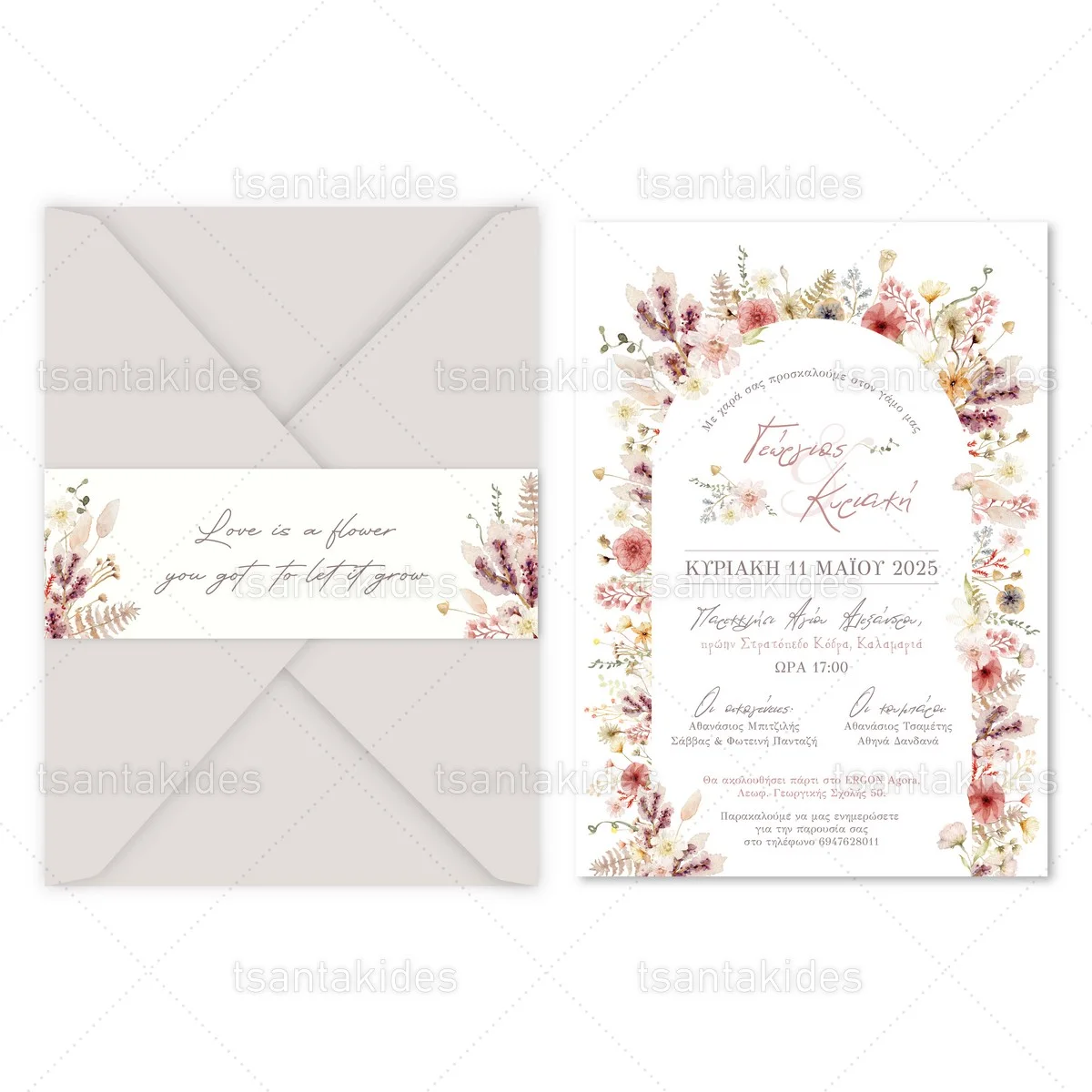 Προσκλητήριο γάμου εκτυπωμένο με θέμα Pink Romance.