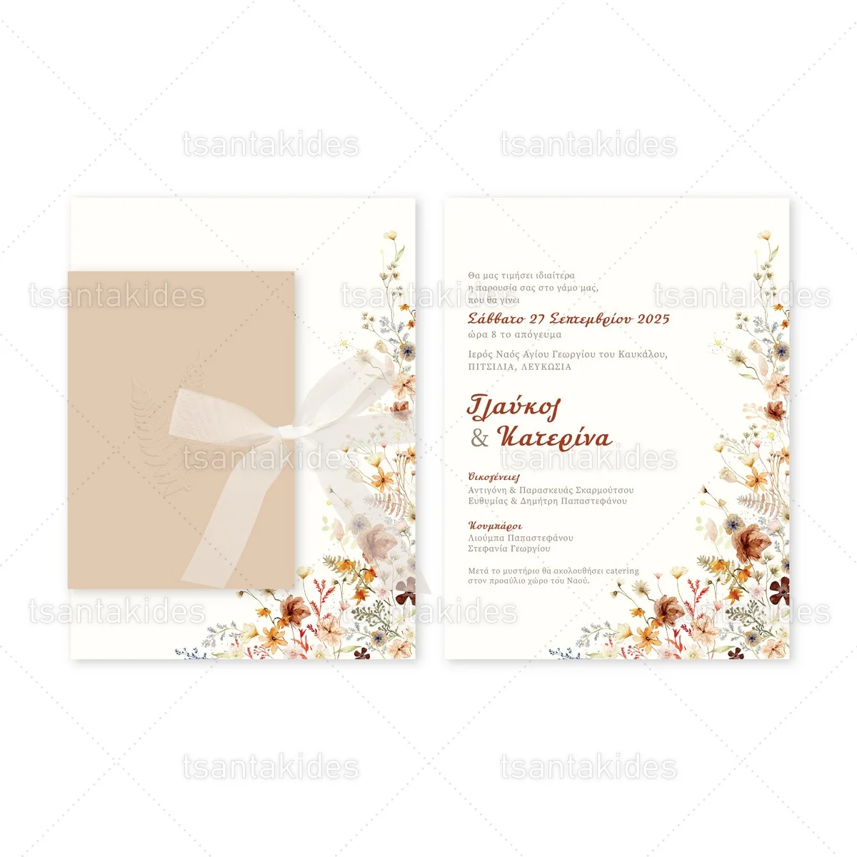 Προσκλητήριο γάμου εκτυπωμένο με θέμα Wildflowers Dried Meadow.
