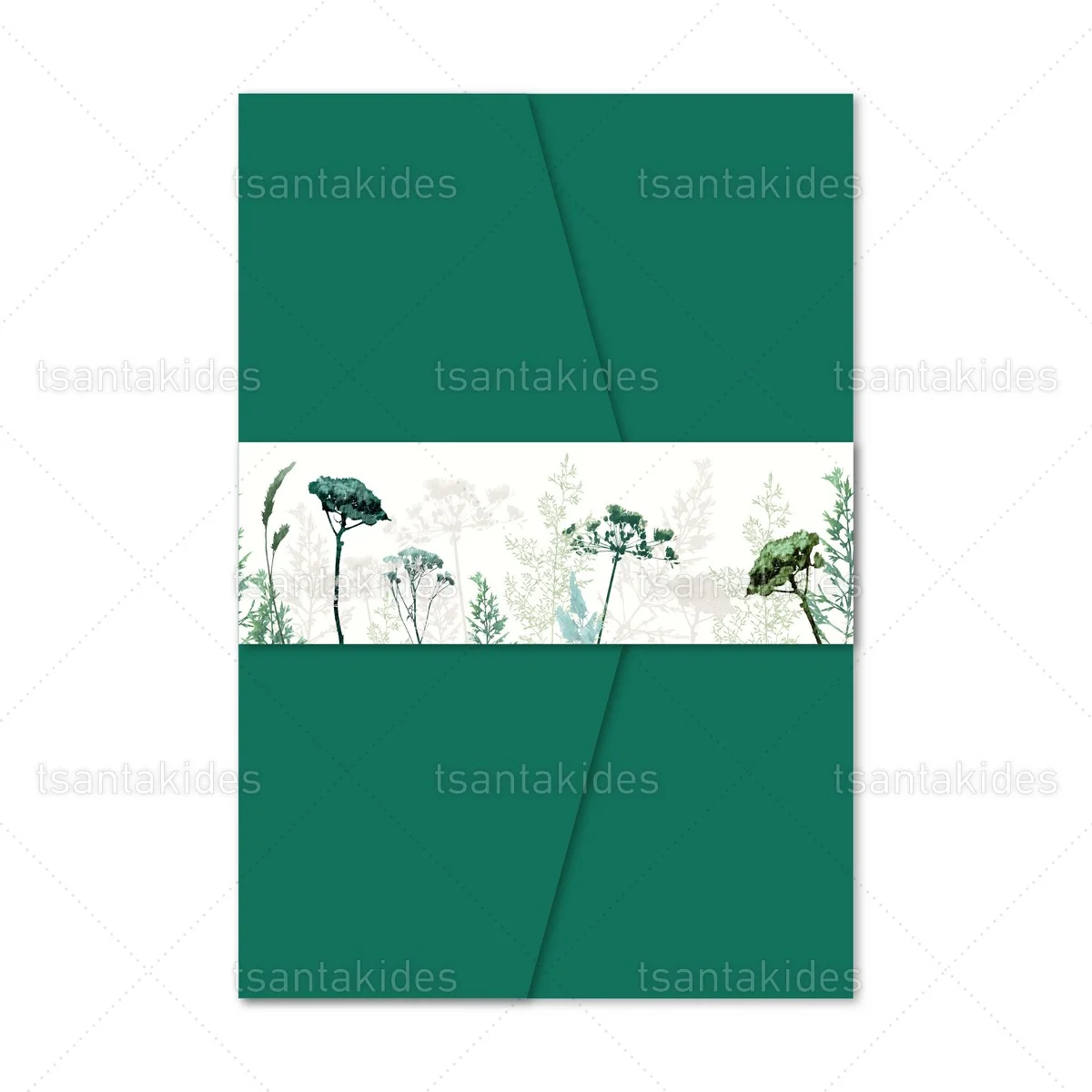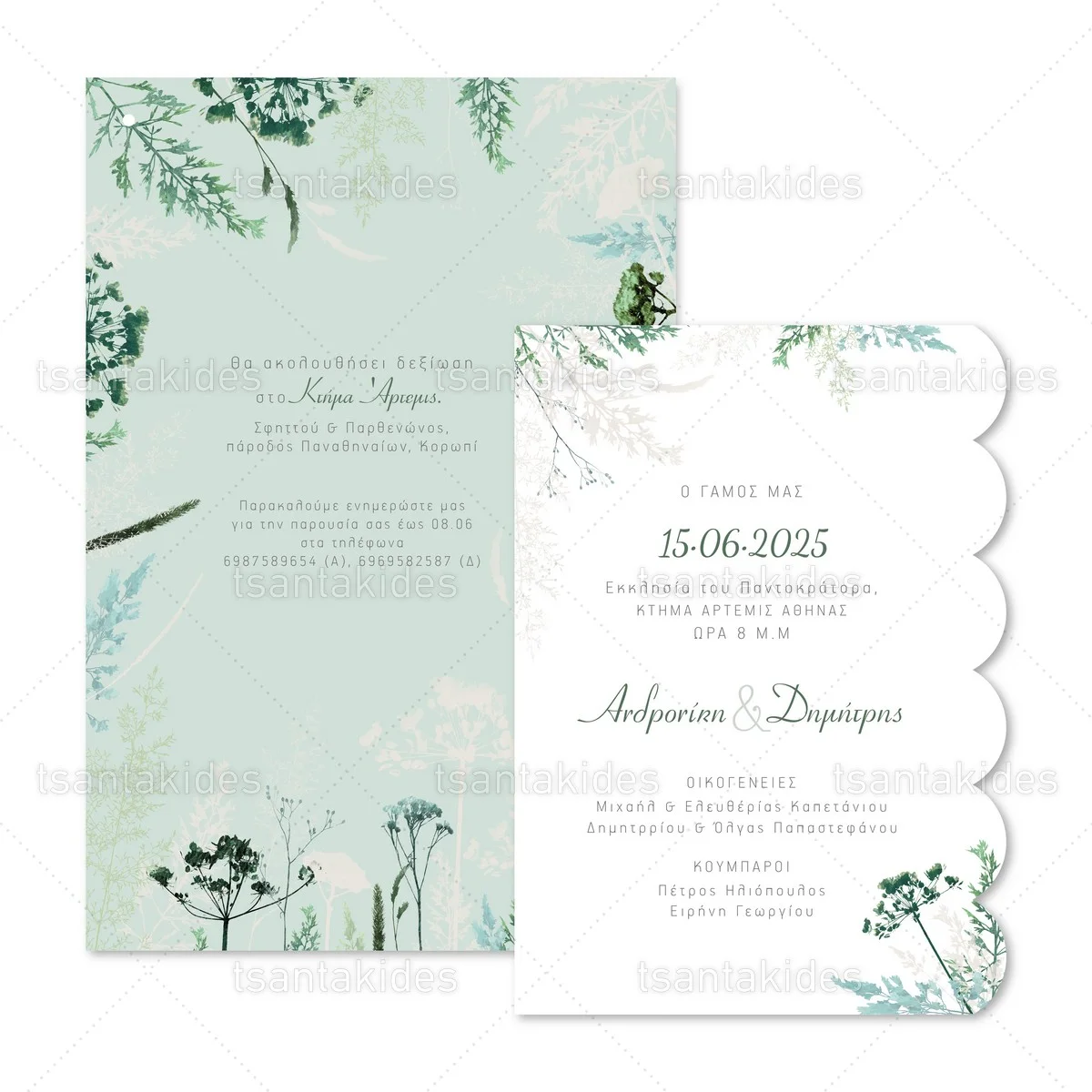 Προσκλητήριο γάμου εκτυπωμένο με θέμα Green Field Flowers.