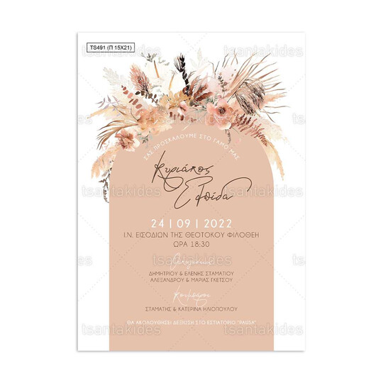 Προσκλητήριο γάμου παπυράκι εκτυπωμένο με θέμα Pampas Arch