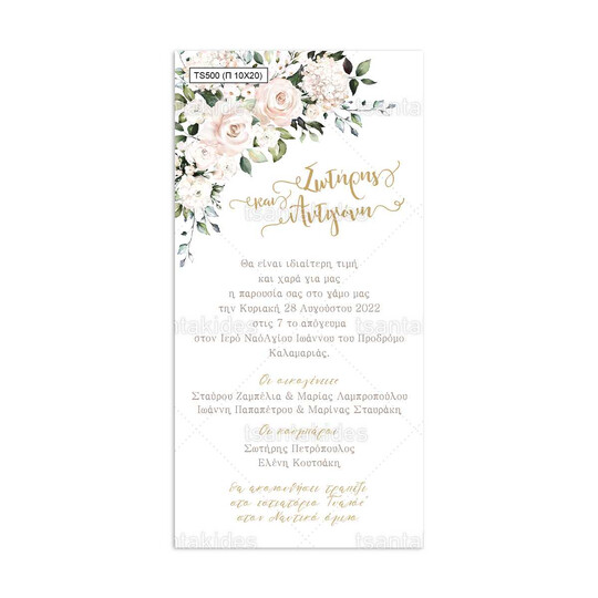 Προσκλητήριο γάμου παπυράκι εκτυπωμένο με θέμα White Roses