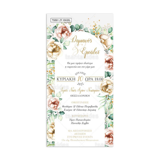 Προσκλητήριο γάμου παπυράκι εκτυπωμένο με θέμα Floral Arc
