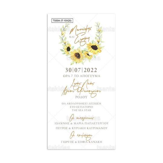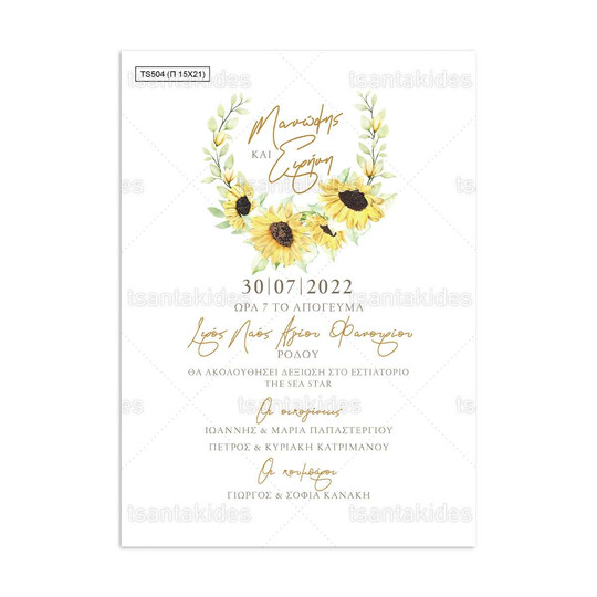 Προσκλητήριο γάμου παπυράκι εκτυπωμένο με θέμα Sunflower