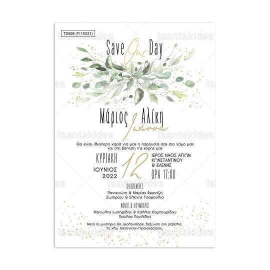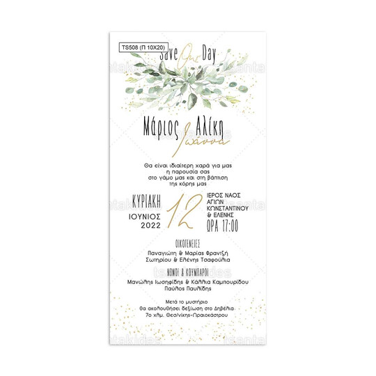 Προσκλητήριο γάμου παπυράκι εκτυπωμένο με θέμα Greenery