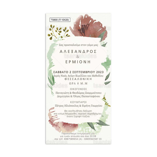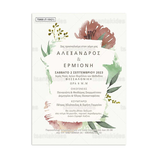 Προσκλητήριο γάμου παπυράκι εκτυπωμένο με θέμα floral σύνθεση σε γήινες αποχρώσεις