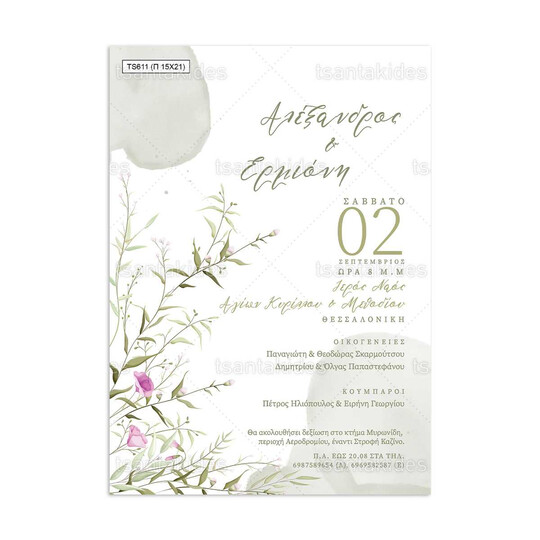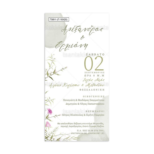 Προσκλητήριο γάμου παπυράκι εκτυπωμένο με θέμα floral σχεδιασμό