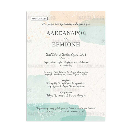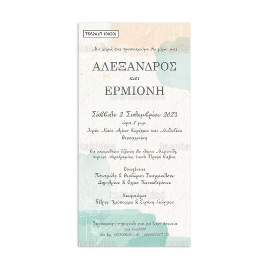 Προσκλητήριο γάμου παπυράκι εκτυπωμένο με θέμα minimal ύφος με pastel χρωματισμούς