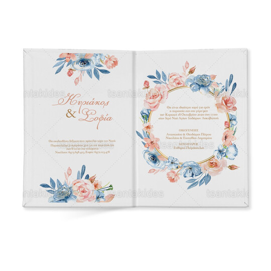 Προσκλητήριο σκληρό καπάκι  μεγάλο εκτυπωμένο με floral σχεδιασμό