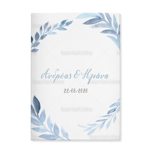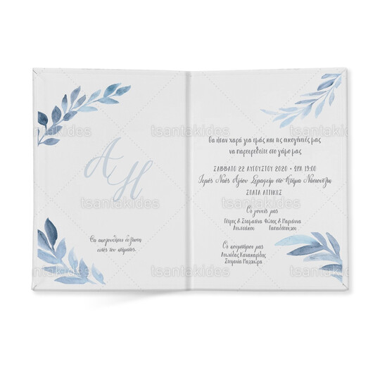 Προσκλητήριο σκληρό καπάκι μεγάλο εκτυπωμένο με κλαδιά σε σιελ χρωματισμούς