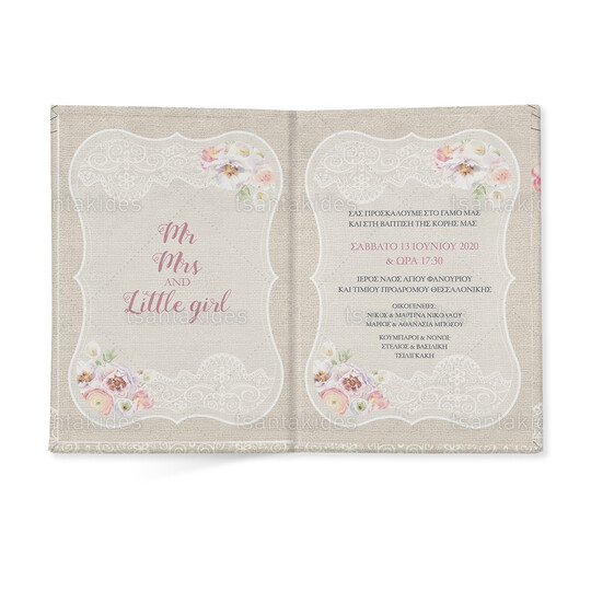 Προσκλητήριο σκληρό καπάκι  μεγάλο εκτυπωμένο με vintage λεπτομέρειες