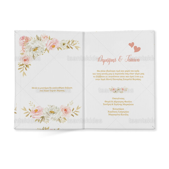 Προσκλητήριο σκληρό καπάκι μεγάλο εκτυπωμένο με dusty pink floral σχεδιασμό