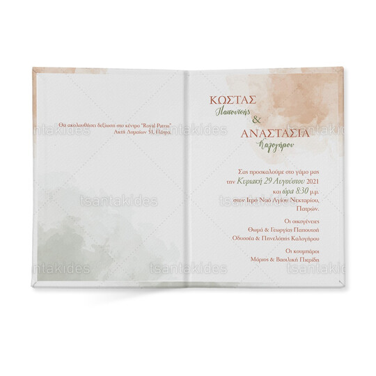 Προσκλητήριο σκληρό καπάκι  μεγάλο εκτυπωμένο σε pastel αποχρώσεις με watercolor