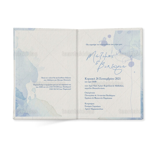 Προσκλητήριο σκληρό καπάκι μεγάλο εκτυπωμένο σε dusty blue αποχρώσεις